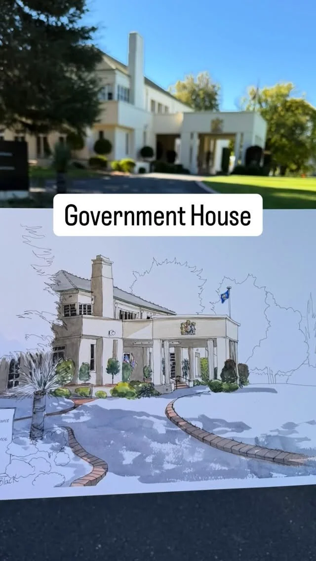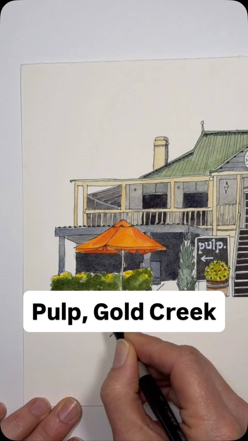 This watercolour and pen artwork depicts the vast landscape surrounding the Murrumbidgee River from a viewpoint on the edge of Macnamara.
