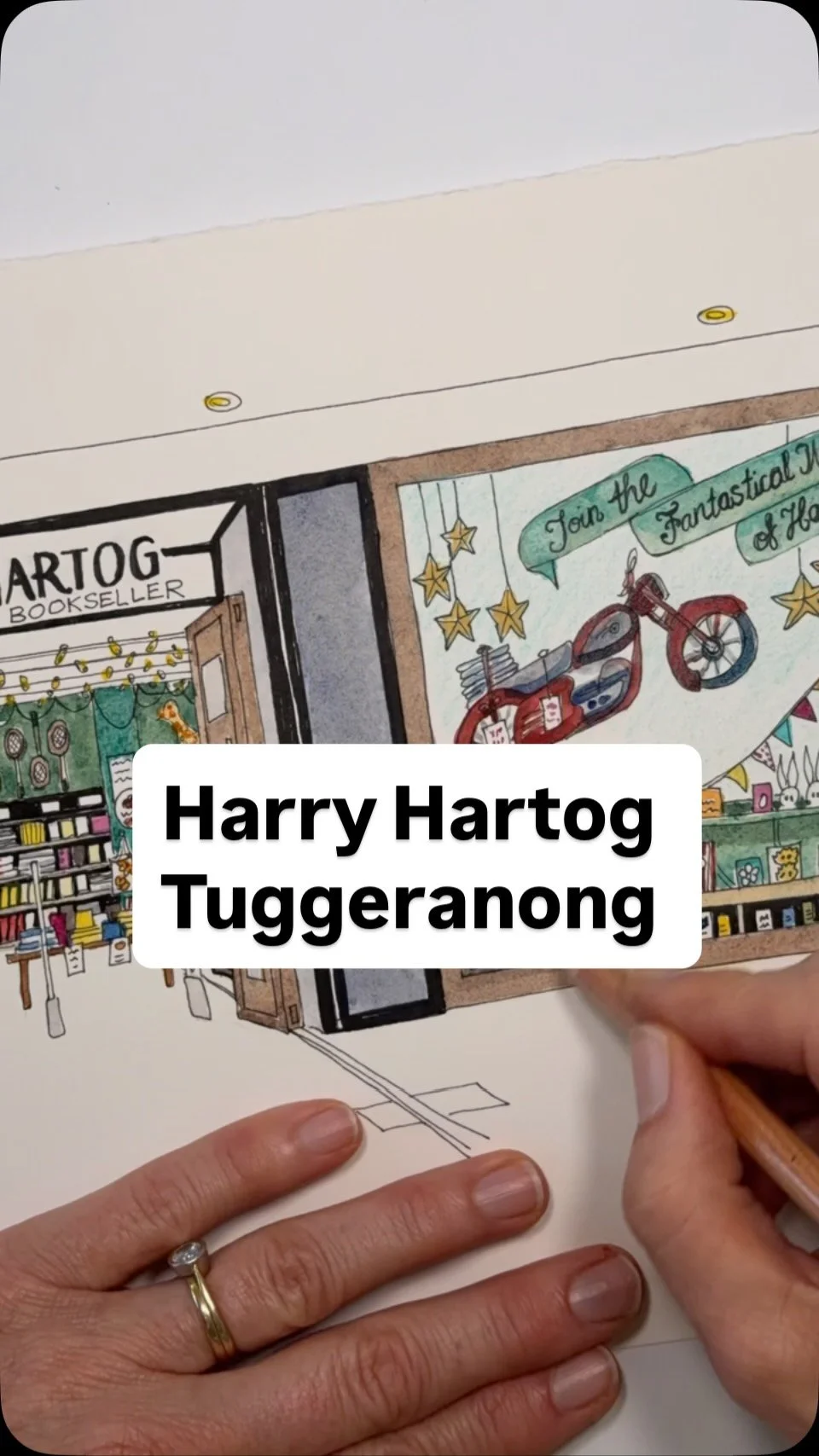 This watercolour and pen artwork depicts the vast landscape surrounding the Murrumbidgee River from a viewpoint on the edge of Macnamara.
