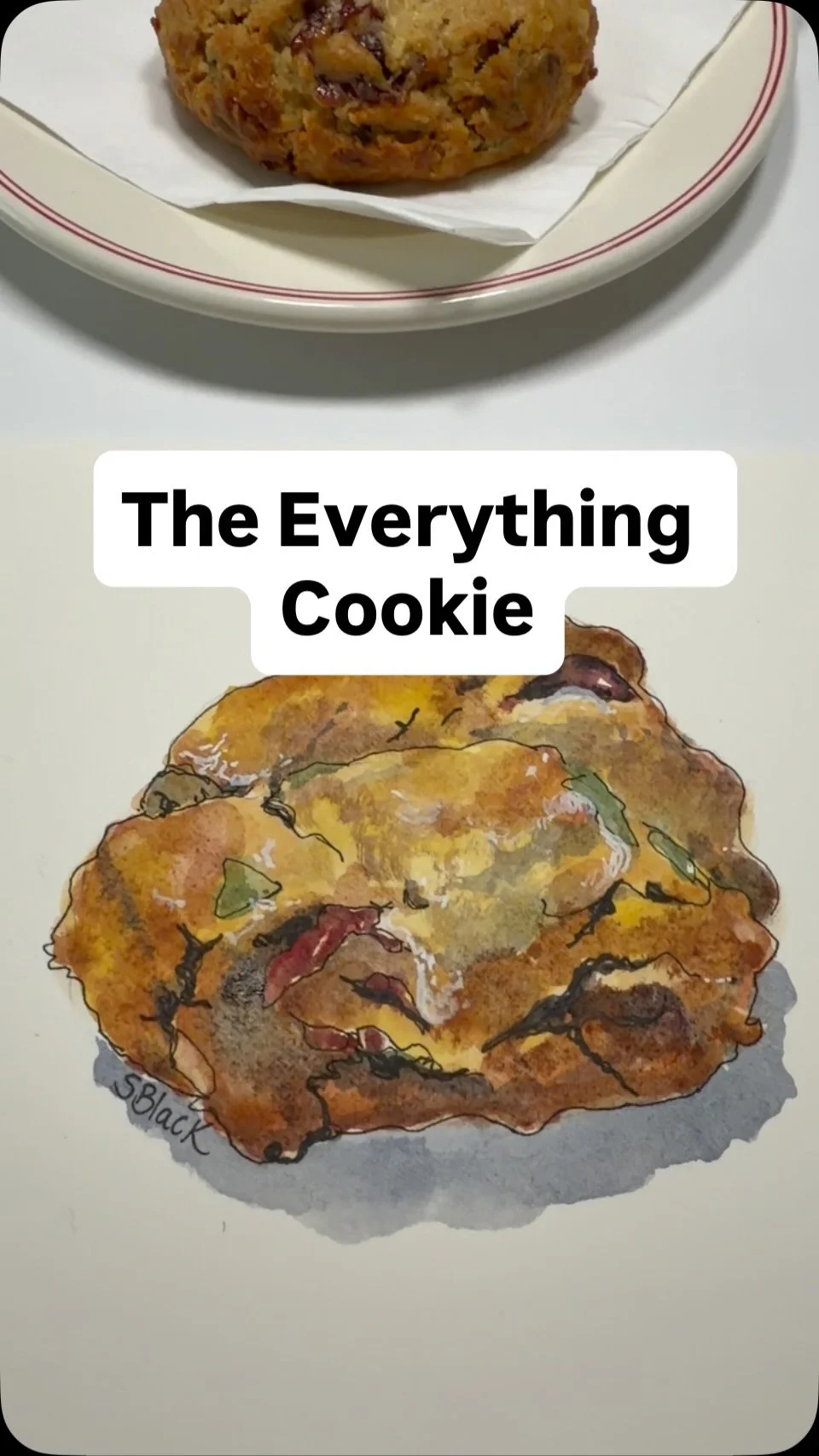 The sketchbook cover features my pen and watercolour sketch of a granola bar I drew in my sketchbook while eating morning tea at Two Before Ten cafe in Aranda, Canberra.